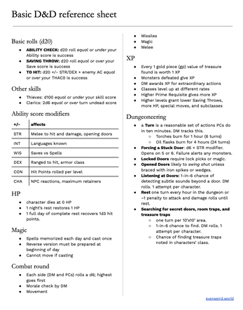 I showed this reference sheet in a video and received a request to make this downloadable. So here it is! It's not comprehensive but it's what I hand out to players starting B/X D&D.